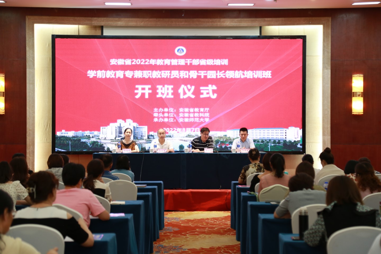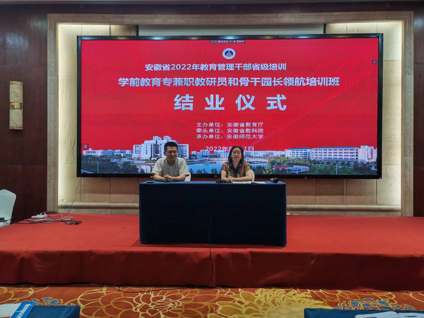 (本网讯)学术交流硕果香,齐聚江城不虚行。2022年8月6日至11日,由安徽省教育厅主办,安徽省教育科学研究院牵头,安徽师范大学承办的“2022年安徽省学前教育专兼职教研员和骨干园长领航培训”在芜湖成功举行。来自全省15个地市2个直管县(市)共100名学员参加此次培训。