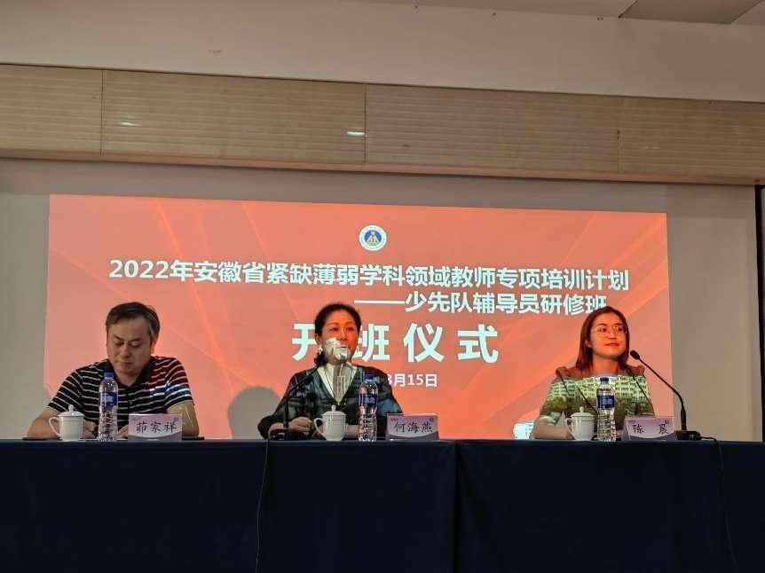 (本网讯)8月15日上午,安徽省2022年乡村学校少先队辅导员研修培训在芜湖开班,安徽royal皇家88平台副院长何海燕,安徽师范大学附属小学党委副书记、安徽师范大学专业学位硕士研究生导师、项目首席专家茆家祥出席开班式,来自全省的50位学员参加开班式。