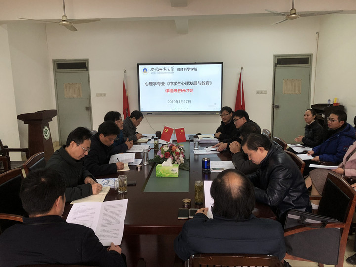 本网讯(教科院 王道阳)117日上午,教育科学学院心理学专业《中学生心理发展与教育》课程改进研讨会在学院三楼308会议室举行。安徽师范大学党委常委、副校长毕明福全程参加了研讨会,学院党委书记方泓、教学副院长辛治洋以及心理学专业全体教师参会,院长桑青松主持研讨会。