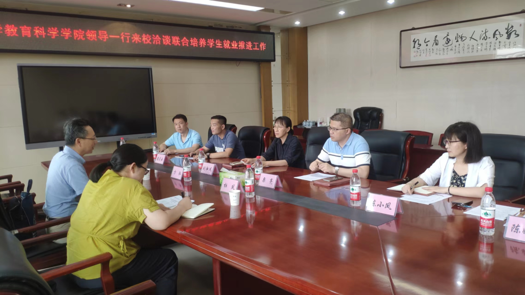 6月9日下午,教育科学学院党委书记方泓、党委副书记杜凤赴马鞍山师范高等专科学校推进联合培养毕业生就业工作。马鞍山师范高等专科学校校长刘淑凤主持就业推进洽谈会,党委委员、教师教育系主任栗亮、学生处副处长、就业指导中心主任晋愈飞、教务处副处长、本科工作部书记潘庆云、教师教育系副主任陈小凤,毕业班辅导员陈婉婕参会。