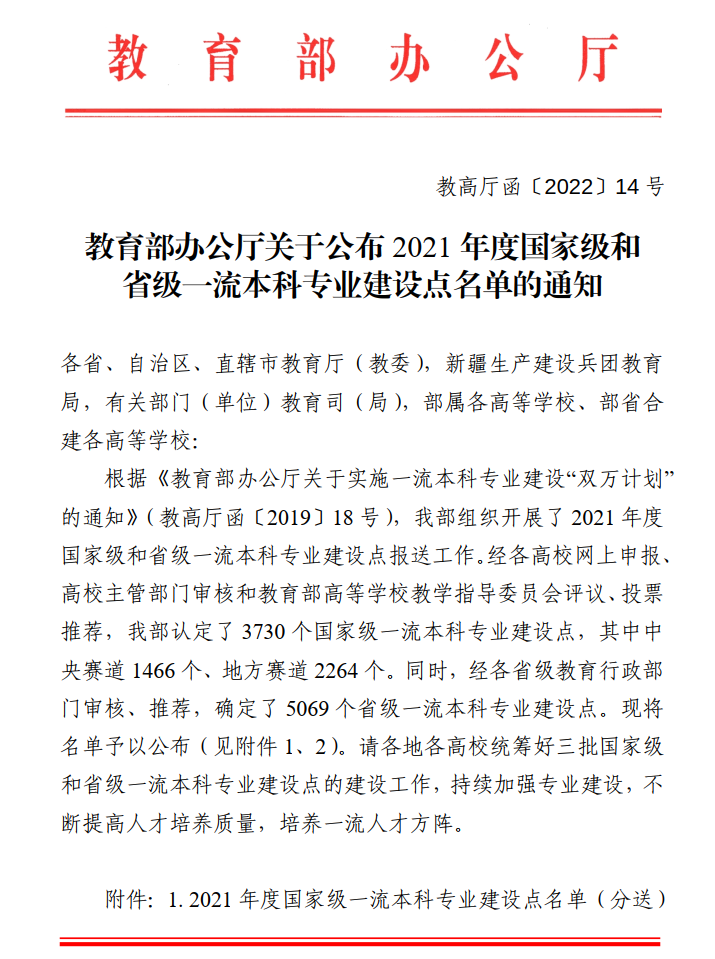 教育部于2019年开始实施一流本科专业建设“双万计划”,利用三年时间(2019-2021年),建设10000个左右国家级一流本科专业点和10000个左右省级一流本科专业点。该计划旨在推动新工科、新医科、新农科、新文科建设,做强一流本科、建设一流专业、培养一流人才,全面振兴本科教育,提高高校人才培养能力,实现高等教育内涵式发展。据悉,我校三年来共有34个专业(2021年度共11个)专业入选国家级一流本科专业建设点,数量居同类院校前列。