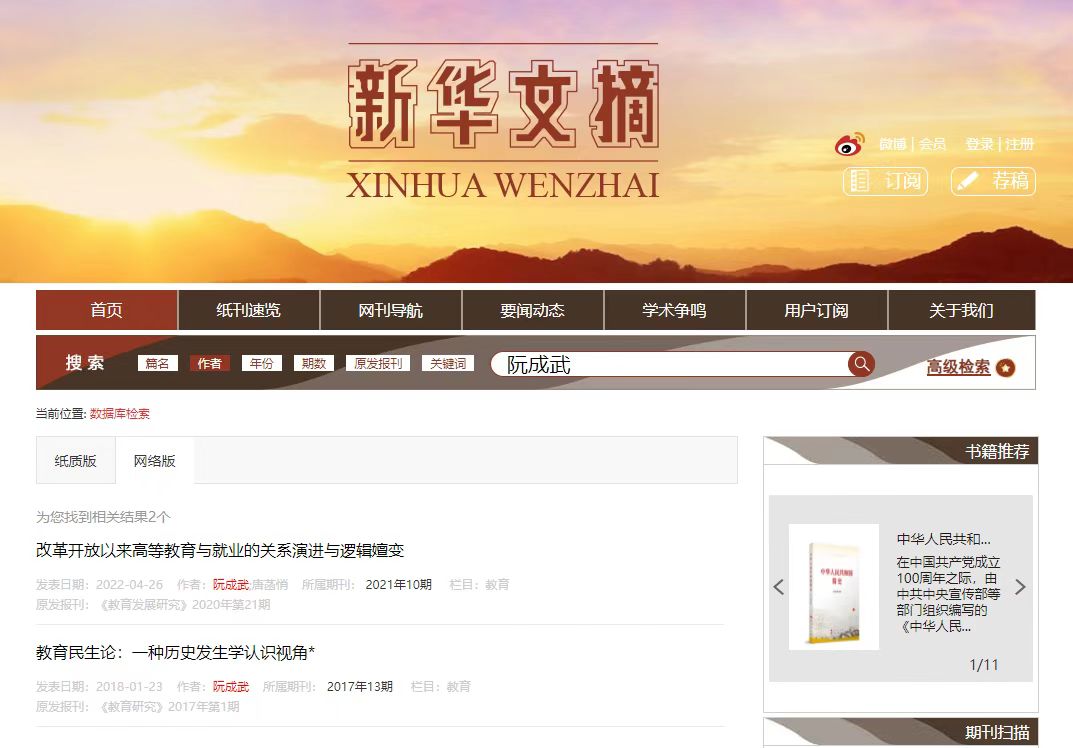 据悉,《新华文摘》是我国大型理论性、综合性、资料性文摘类权威期刊,以其思想性、学术性、权威性和可读性享誉海内外。近年,我院多位教授发表的论文被该刊全文转载,这既充分肯定了学院教师科研成果的学术水准,也极大地提升了学院科研工作的社会影响。