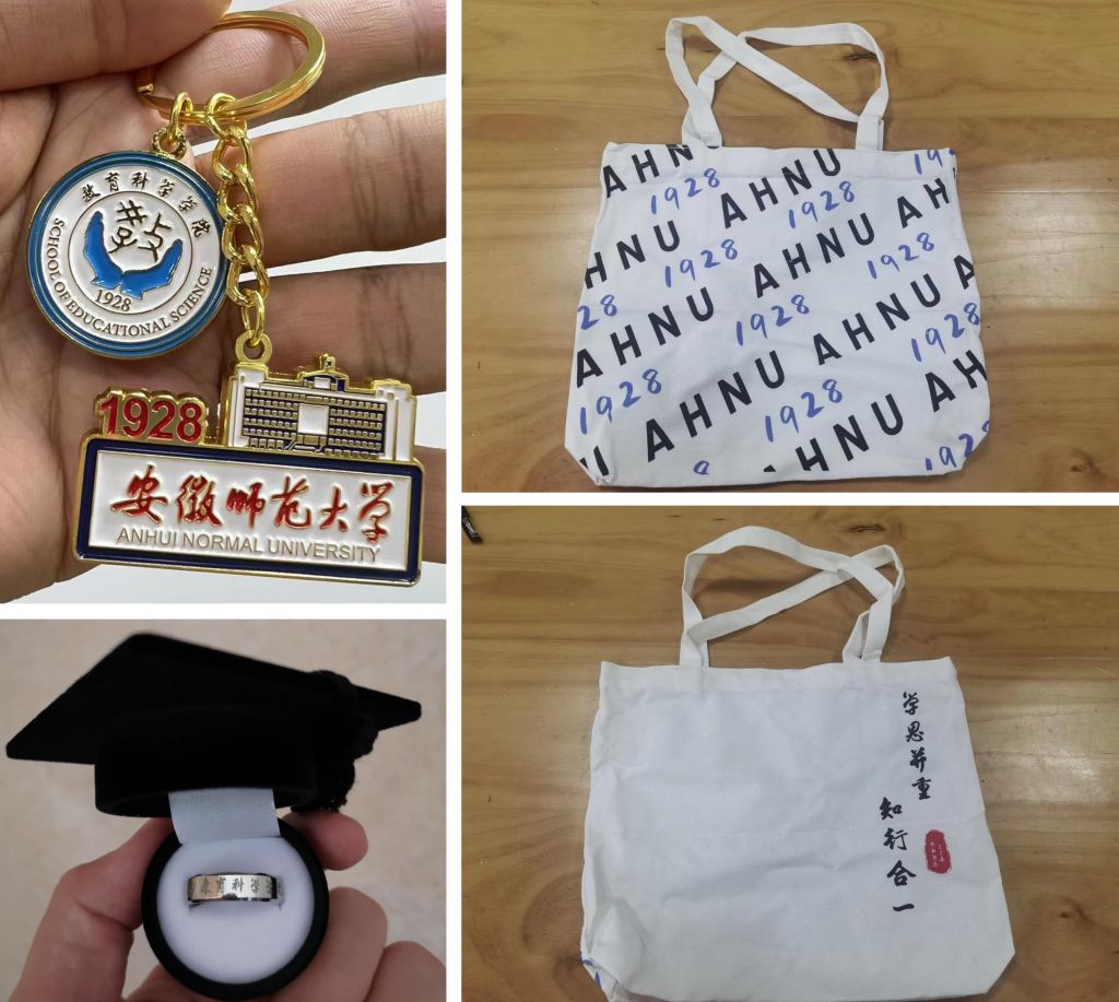 为进一步强化22届毕业生爱校荣校教育,激发毕业生对学校、师长的感恩情怀,学院上下为毕业生精心准备多份“礼物”,让毕业生充分感受学校和学院的不舍情谊与真挚祝福。学院团委牵头,为毕业生定制专项礼物:包含可有每个人名字的纪念戒指,专门设计,印有校名和田楼的钥匙扣,以及带有院训的定制帆布包。此外,学院牵头制作两块桁架,以“师恩难忘”和“扬帆起航”为主题,邀请学生和教师代表为对方送上祝福,无数毕业生驻足观看,合影留念。