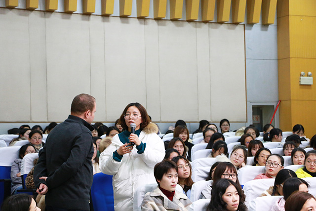 报告引起在场听众的积极回应,针对学前教育教学实施中的具体操作及中澳两国教育模式的异同分析等一类问题上,多位同学踊跃发言,获得了Leigh Disney(迪斯尼 ·李)的热情详解。其中来自幼儿园的从教人员更是针对实际教学过程中的种种设疑取经,Leigh Disney(迪斯尼 ·李)以详细生动的实例回答了多位一线教师的各类问题,整场会议在徐赟副教授的总结中宣告结束,尚觉意犹未尽,Leigh Disney(迪斯尼 ·李)与其爱人与在场听众合影留念。