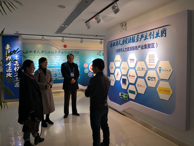 合肥市公共就业人才服务管理中心交流部部长林云涛带领张如华一行参观了招聘大厅、高校毕业生就业服务窗口、档案库房。林云涛介绍了合肥市人力资源服务产业创业园的基本情况、就业管理服务的具体做法、高校毕业生档案管理和派遣等“一站式”服务。从中可以感受到,该中心是一个强大的综合性就业服务平台。
