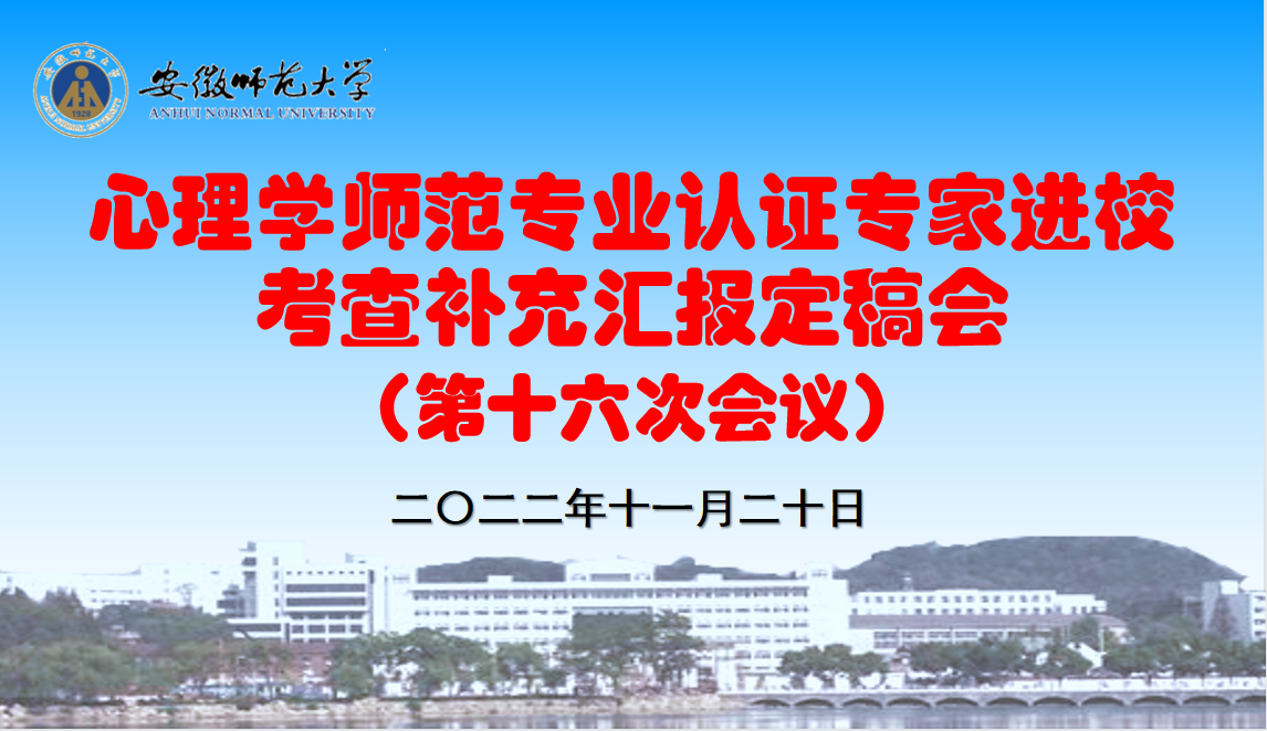 根据安徽省教育评估中心的安排,2022年11月21-24日为专家进校考查,因疫情原因,本次考查以线上方式开展。评估专家组由绵阳师范学院副校长陈寒教授担任组长,成员包括宁夏大学丁凤琴教授、天津师范大学冯虹教授、湖北省教育评估院程少波研究员、华南师范大学童汝根副教授,四川省教育评估院陈雪琴老师担任秘书。11月22日上午,学校召开专家进校考查见面会,学院教学副院长韩建涛代表心理学专业作补充汇报,从专业简介、人才培养的理念和目标、人才培养的特色和成效、未来努力的方向等四个方面向评估专家和与会领导老师汇报心理学专业办学的基本情况。