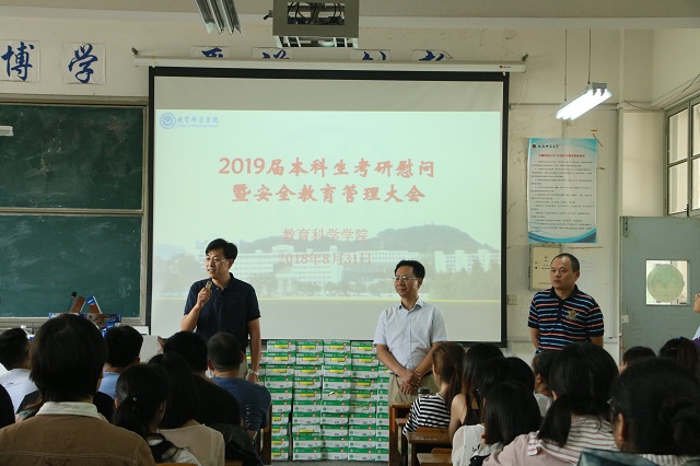 本网讯(教科院 左孟杰)近日,教育科学学院在田楼8101教室召开了2019届毕业生考研慰问暨安全教育大会。院党委书记方泓、院长桑青松、党委副书记张如华、副院长辛治洋、毕业班辅导员莫大贡老师及2019届100多位在校备考学子参加了此次大会。会议由张如华主持。