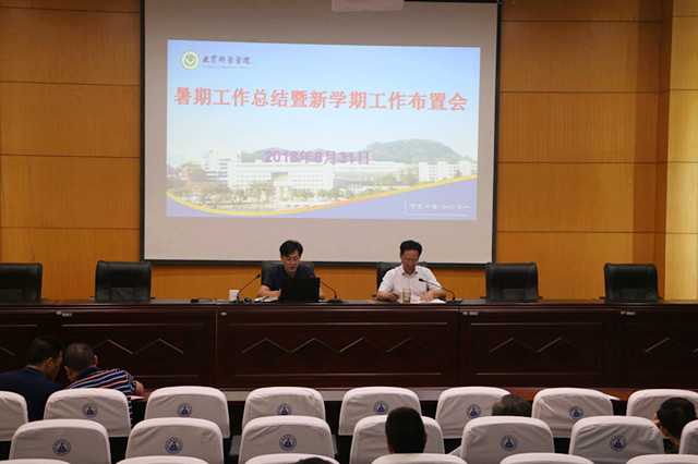会上,院长桑青松从学生工作、本科教学、科研与研究生、行政工作等四个方面通报了学院暑期工作并对开学初的工作进行布置。接着,桑青松还领学了由教育部、财政部、国家发改委联合制定的《关于高等学校加快“双一流”建设的指导意见》(教研2018-5号)文件精神。