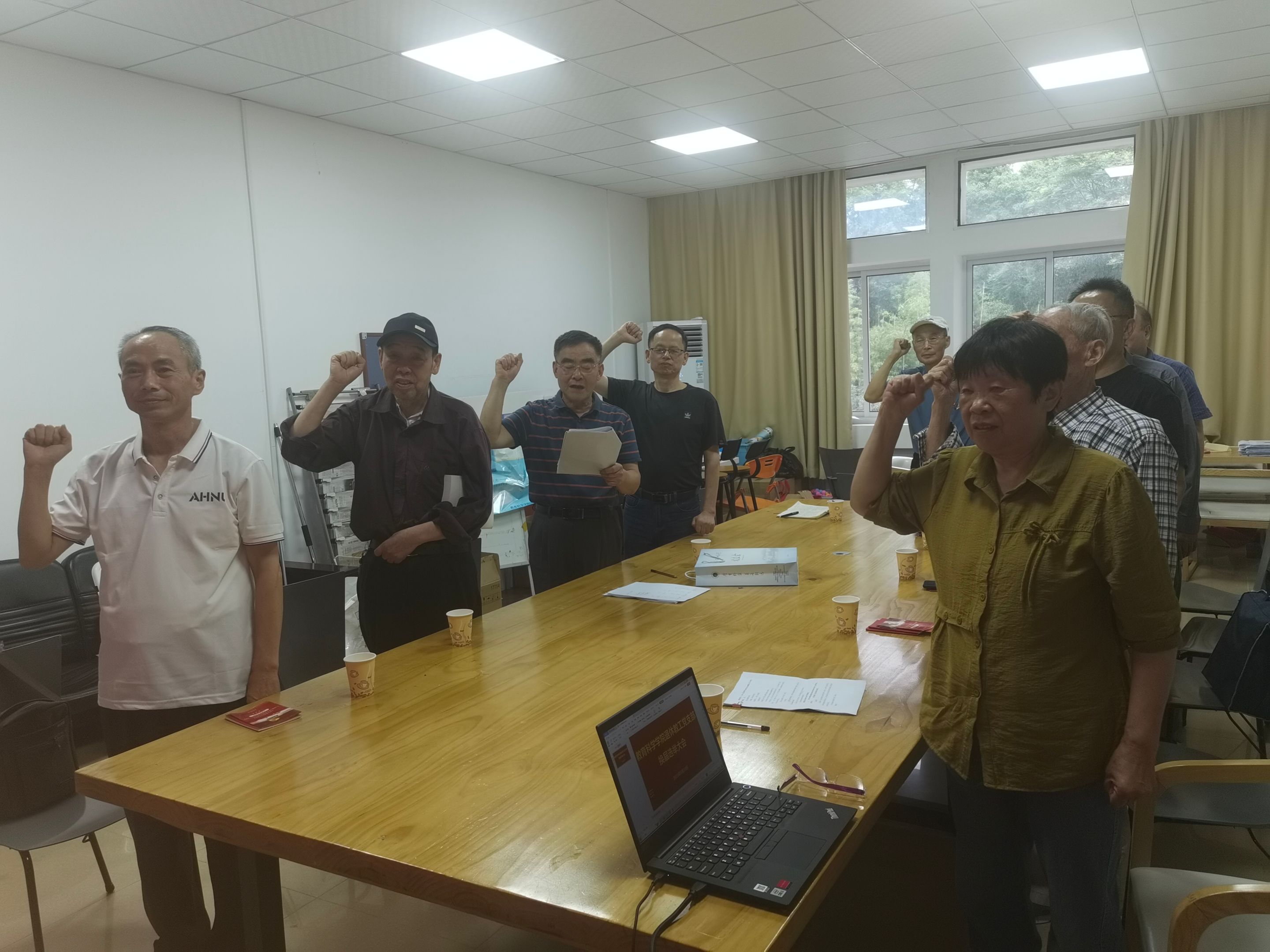 与会党员在讨论通过换届选举办法之后,通过无记名投票,选举产生了王守恒、方泓、丁荣生和姚运标为新一届的支部成员。退休教工支部换届选举大会在党员同志重温入党誓词的仪式中圆满结束。
