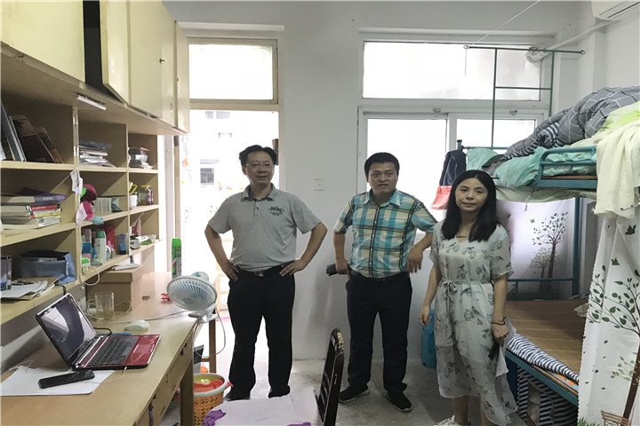 在走访的过程中,方泓等一行人深入寝室,细心了解寝室内部的空调,照明等一些生活内容,领导们梳理了暑期留校的安全隐患,就用电、交通等与生活戚戚相关的安全问题和同学们一起开展讨论,排查宿舍中可能存在的用水用电等安全隐患。此外,方泓和聂竹明还询问了暑期留校的同学有关生活上的诸多事宜,例如日常就餐、用水用电问题,并强调留校期间应当遵守规章制度,树立安全意识,合理安排假期,随时与留校信息员老师保持联系等,确保安全度过暑假。