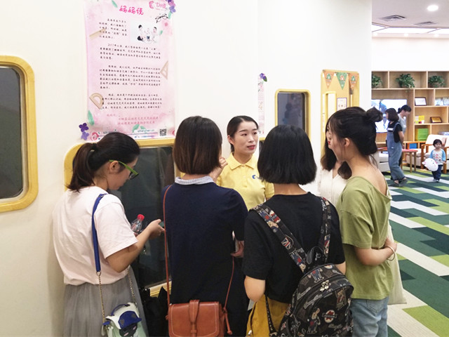 上午九时许,老师与同学们顺利抵达南京七田真国际早教中心,在中心负责人荣蓉老师的引导下,大家参观了中心的教学设施,并有幸观摩了“一对一”授课。期间,张如华书记与荣蓉老师针对应届毕业生的专业要求、工作环境、发展前景等问题进行了深入细致的交流,各位学生在观摩之余也针对孩子的培养,家长的陪伴以及教育的方式等问题向中心老师进行了询问。在随后的考察过程中,部分学生现场投递了简历并进行了面试,得到了中心招聘主管的认可与肯定。