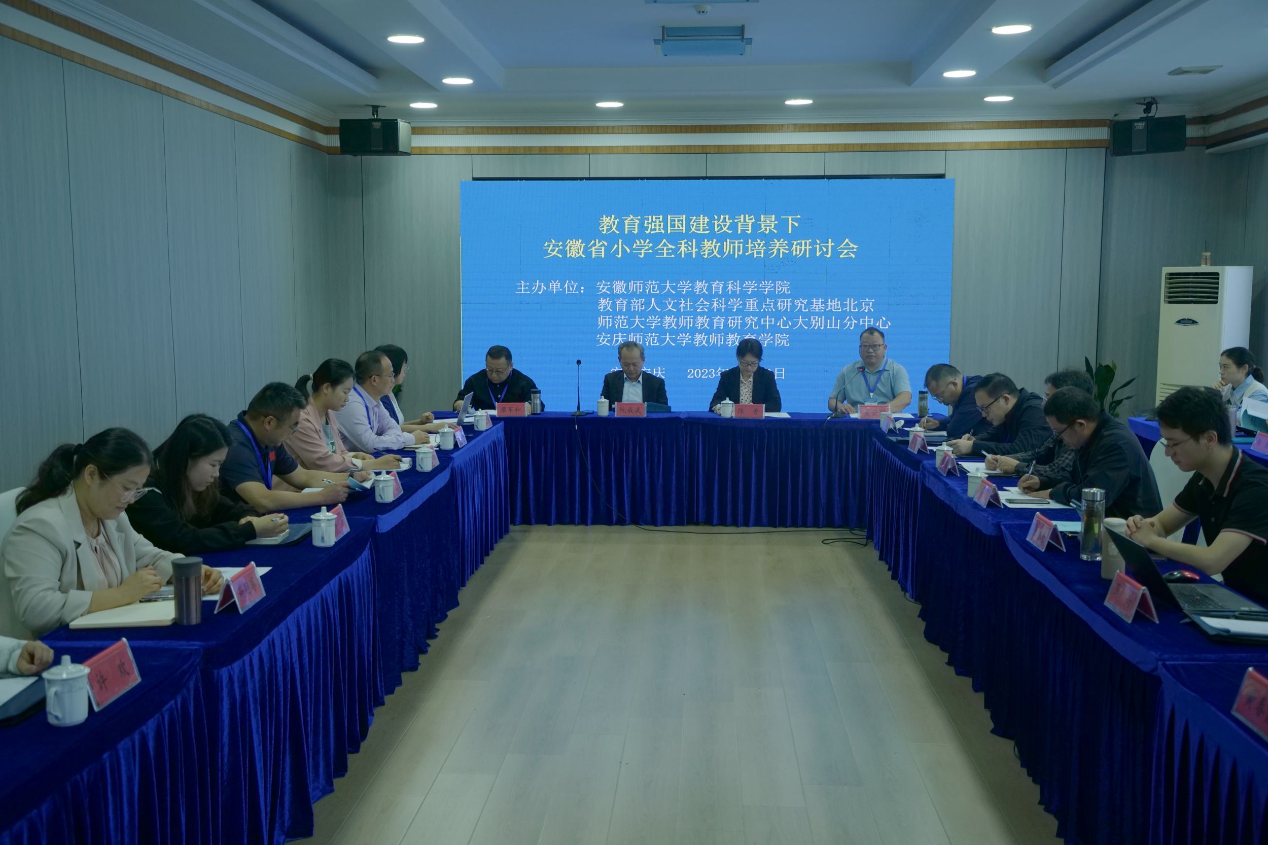 为推进教育强国建设,促进安徽省小学教育专业建设和乡村小学全科教师培养,安徽省乡村小学全科教师培养虚拟教研室于10月18日-19日在安庆市顺利召开第一届研讨会。此次会议由安徽royal皇家88平台、教育部人文社会科学重点研究基地北京师范大学教师教育研究中心大别山分中心、安庆师范大学教师教育学院主办,虚拟教研室负责人阮成武、小学教育专业负责人王芳、专业秘书马兴、班主任陈元龙参加了此次会议。安徽省乡村小学全科教师培养院校相关领导和教师代表应邀参会。