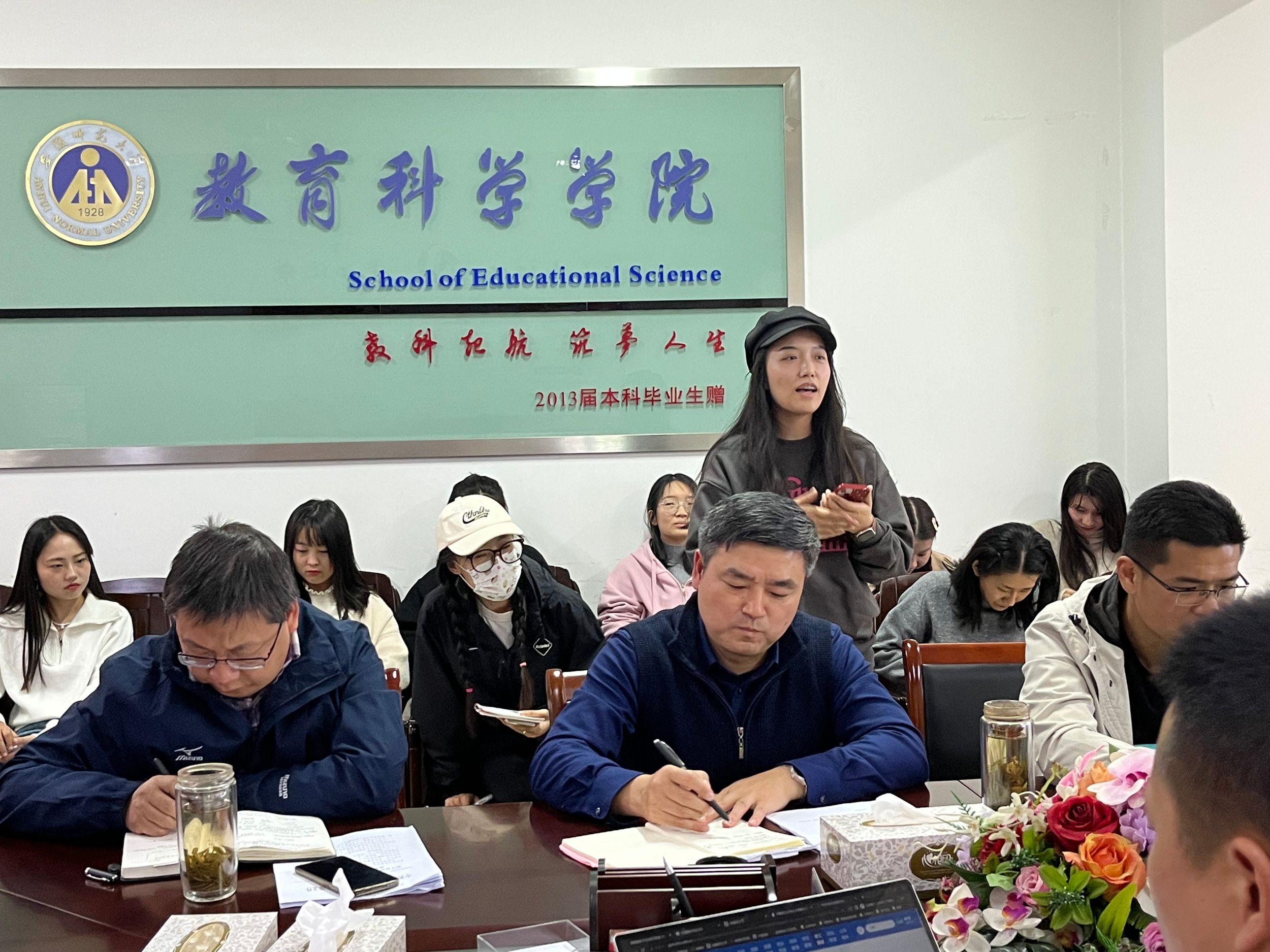 许国飞做总结讲话,为同学们热心参与和积极建言献策表示感谢,并提出期望:第一,作为学生干部,要充分发挥桥梁纽带作用,做好上传下达的工作。第二,加强交流学习,不断提升自我教育的能力和自主开展学术研究的本领。最后他表示,对学生提出的问题,学院非常重视,会认真梳理、积极解决、落实具体行动,也希望学生平时多跟老师反映交流。