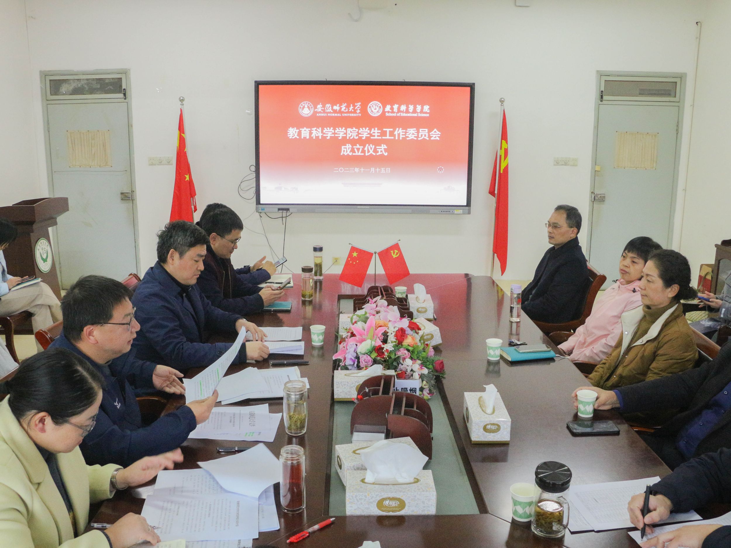 为落实立德树人根本任务,着力解决学生成长成才面临的实际问题,努力实现“一个不掉队”和“一个不能少”目标11月15日下午,教育科学学院在田楼308会议室举行学院学生工作委员会成立仪式。学院学生工作委员会全体教工委员、学生委员参会,会议由院党委书记许国飞主持。
