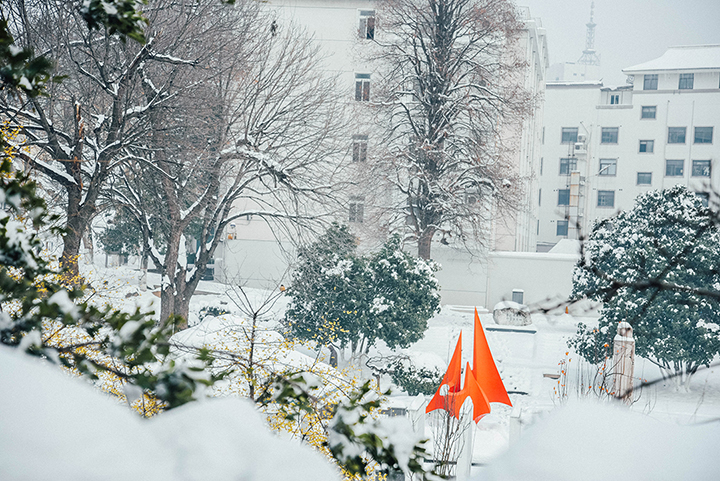 (教科院 刘和海) 凛冬已至,六花纷飞。师大校园“银装素裹,分外妖娆。”绵绵的白雪装点着师大,琼枝玉叶,粉装玉砌。银白的师大中,琼花腊梅争艳,颇有些“梅须逊雪三分白,雪却输梅一段香”的韵味,而皑皑白雪中的教科院更是平添了一抹皓然之色。