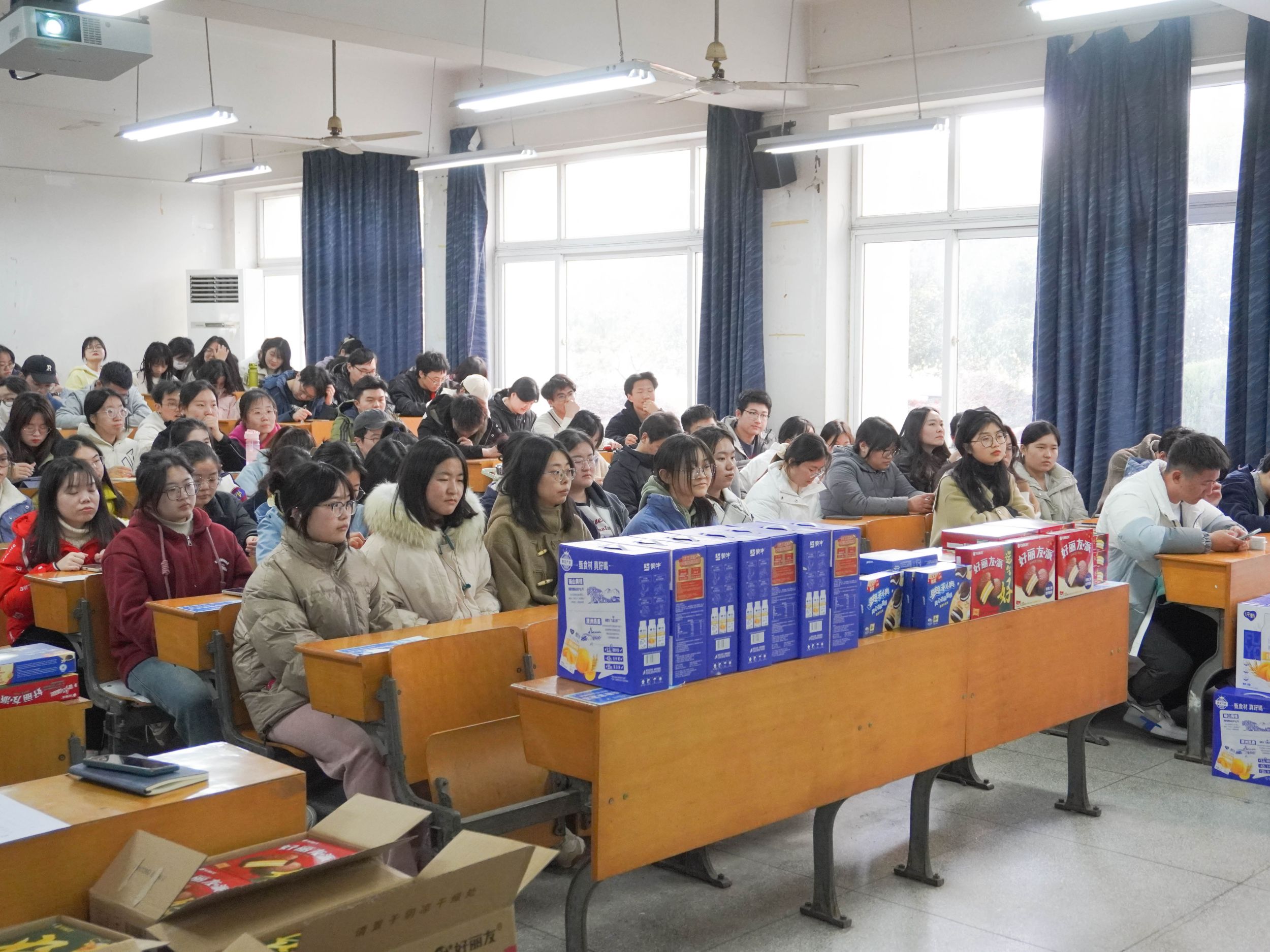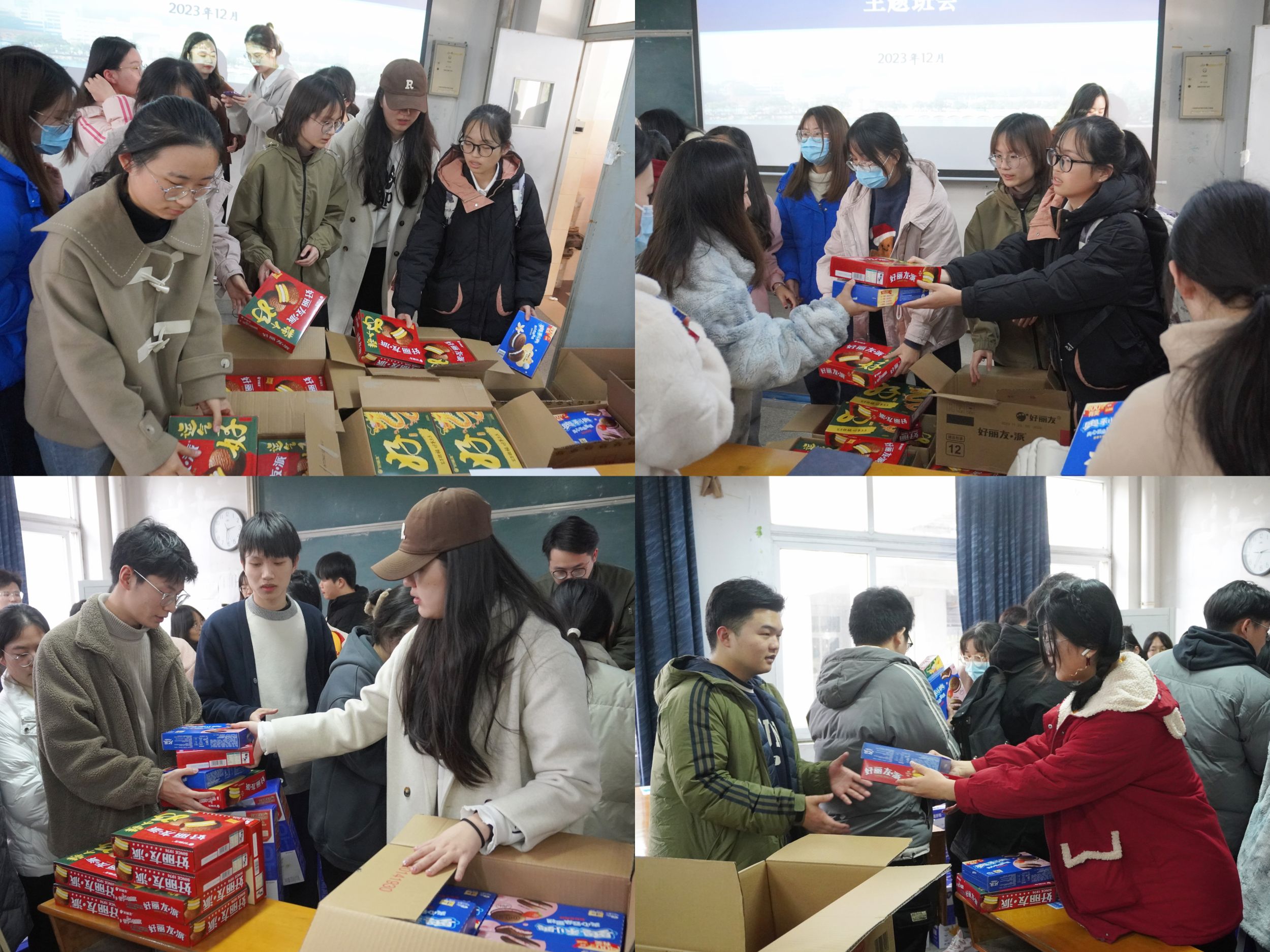 随后,学院领导老师为同学们发放考研慰问品。一箱箱、一盒盒无不寄托着学院对考研学子热情的问候和暖心的关怀,让备战学子们深受鼓舞,内心动容。