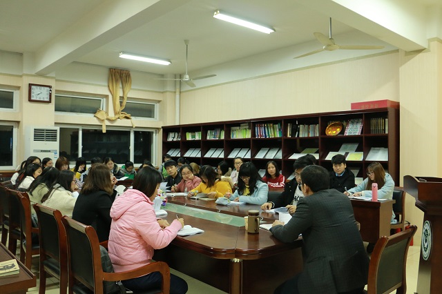 本网讯(教科院 杨悦琦)为深入学习领会党的十九大精神,1124日晚,我院团委学生会举办了习近平教育思想读书会开班仪式。团委委员、学生会主席团、学生会各部门负责同学及2017级各专业班长和团支书参加了活动。习近平教育思想研究中心执行主任徐赟老师到会指导。