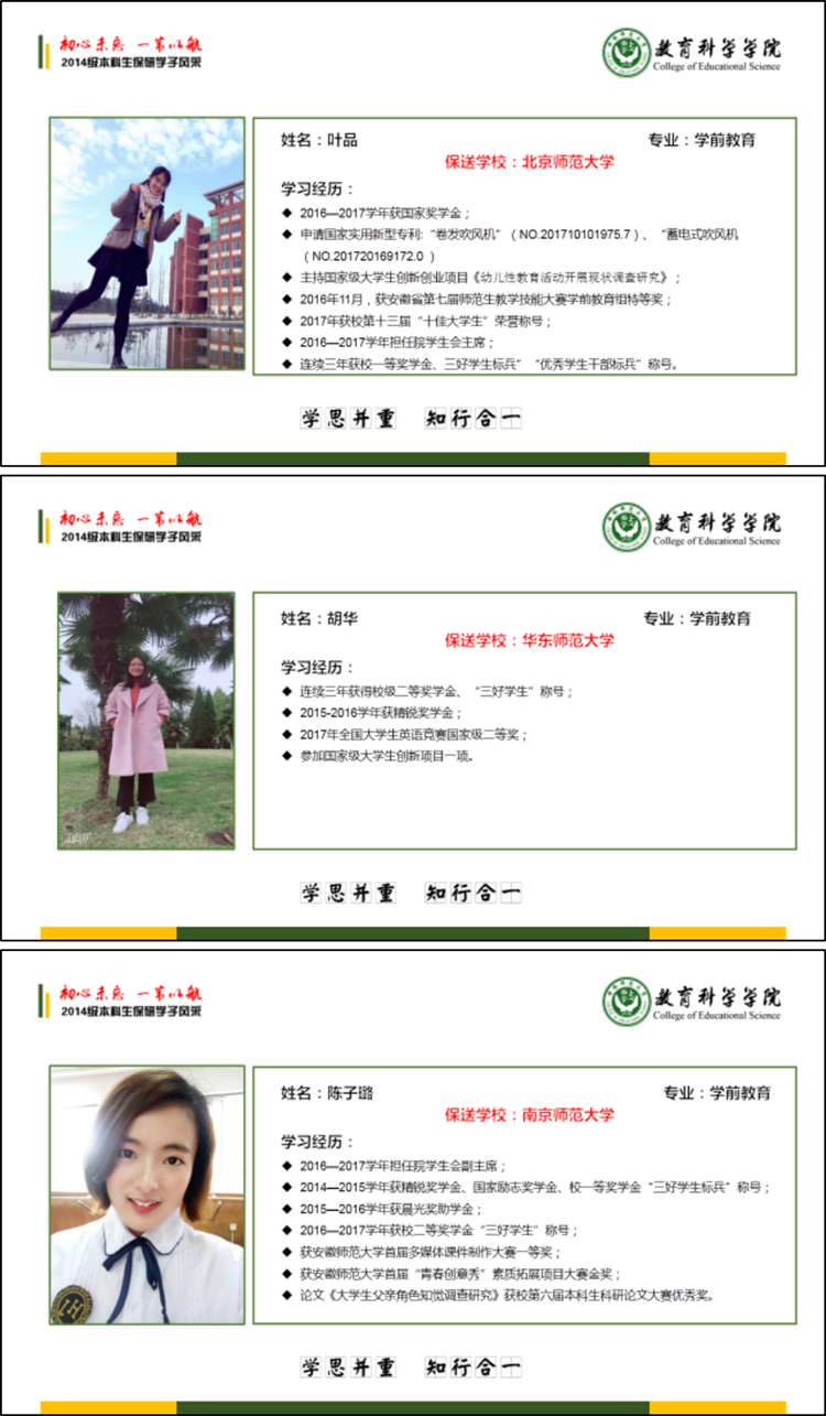 【身边的榜样】初心未忘 一苇以航——教育科学学院2014级本科生保研学子风采