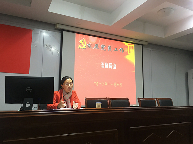 她向学员们介绍了我院严把“入口关”,在发展党员流程中的创新之处。在解读过程中,张如华着重强调了从入党申请到最后成为正式党员主要阶段的时间要求,提醒大家要注意包括入党申请书在内的多项发展党员工作文书表格的具体要求与填写规范。她勉励全体学员应该把进入党组织作为奋斗目标,在奋斗的过程中不断地进行自我尝试、自我提高和自我完善,永远将政治标准放在首位,并通过自己的不懈努力达成目标。