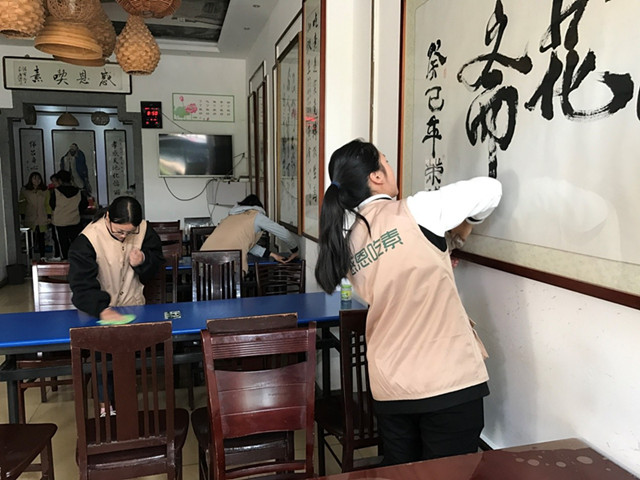 一来到雨花斋,学员们就开始了紧锣密鼓的工作。在这里进行服务的义工互称为“家人”,在他们的带领下,同学们分成两组,对雨花斋进行了清扫工作。随后,同学们与各位义工一起诵读感恩词、弟子规等,学习了雨花斋特有的“孝”文化。