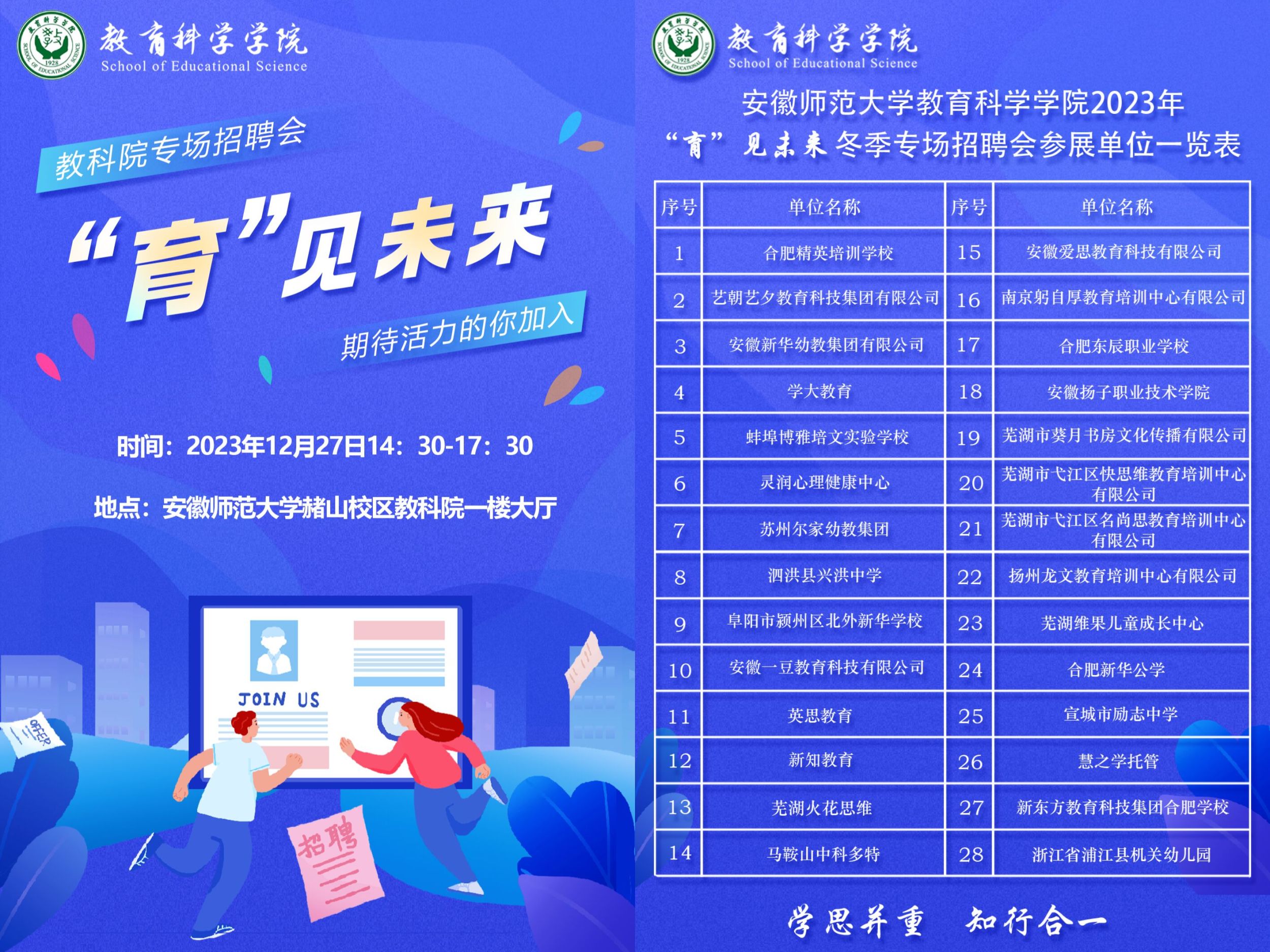 为贯彻落实教育部、人力资源社会保障部召开的2024届全国普通高校毕业生就业创业工作视频会议精神,积极响应学校“大学生护航行动计划”,12月27日下午,教育科学学院举办2023年“育”见未来冬季专场招聘会。学院党委书记许国飞、副书记杜凤、副院长何海燕、张更立等深入招聘会现场,与用人单位和毕业生进行交流,了解毕业生简历投递情况和用人单位对人才培养的需求。