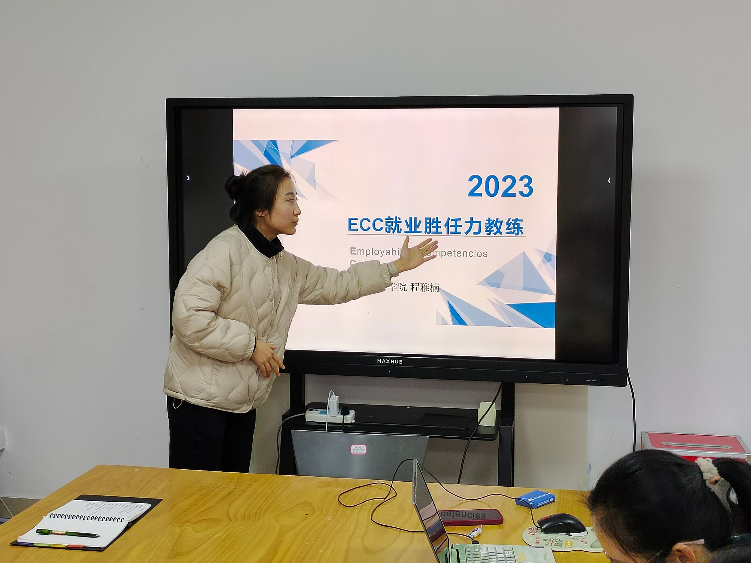 22级辅导员程雅楠分享了参与高校就业胜任力教练培训的心得感悟。她围绕就业理论的变迁、大学生就业的现实与未来、走近就业胜任力教练等方面进行交流,详细介绍了工作世界系统、不同岗位的就业胜任力和岗位就业胜任力拆解内容。会上大家结合学院就业工作实际,就如何将“就业胜任力”更好地运用到日常工作中展开讨论交流。