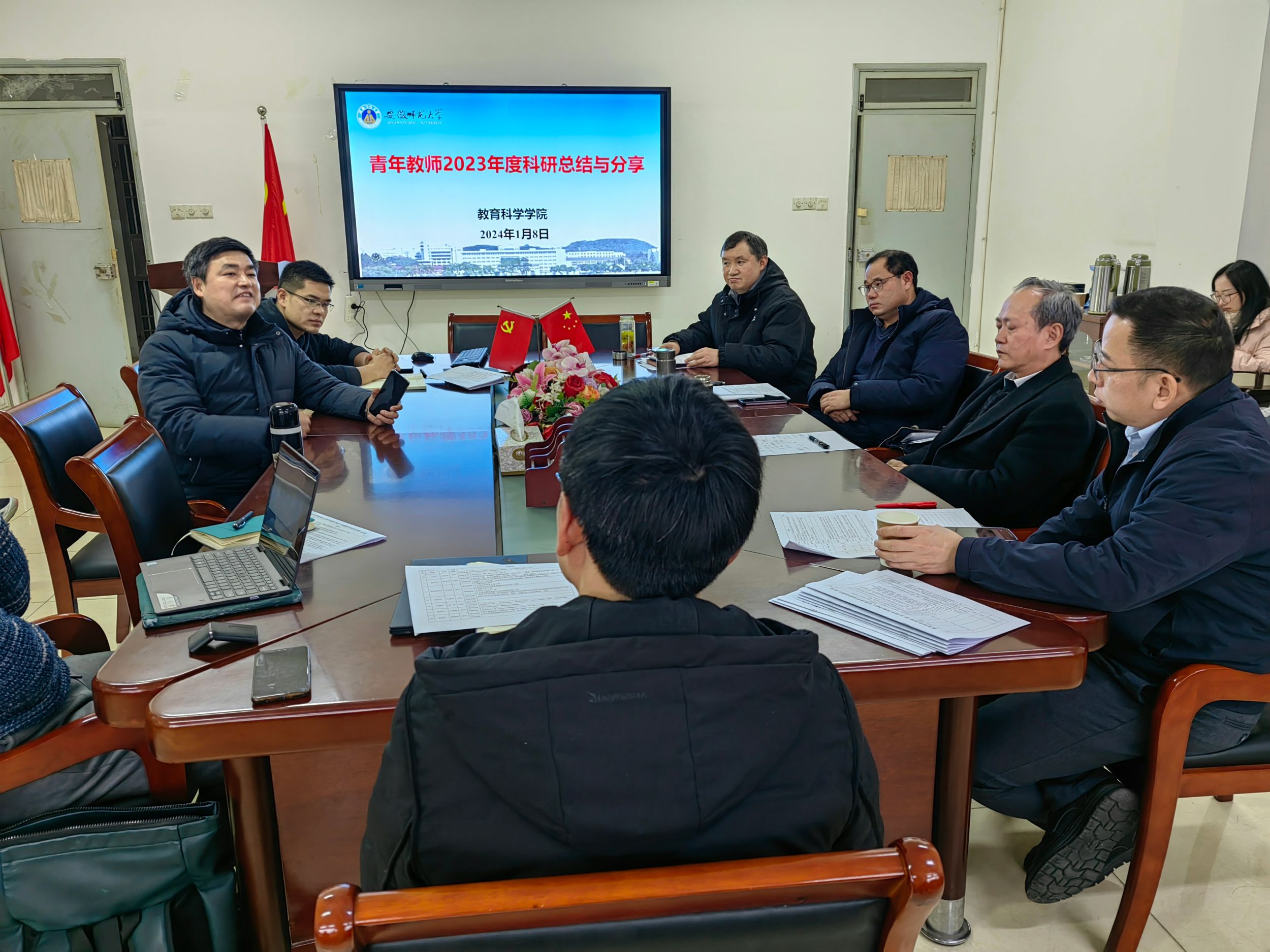 202418日下午,教科院召开2023年度青年教师科研总结与分享会暨赭山青年学者论坛第31期,阮成武、方双虎、刘和海、韩建涛受邀担任点评专家,学院40岁以下青年教师40余人参会交流,院长李宜江应邀参会指导。会议由副院长吴文涛主持。