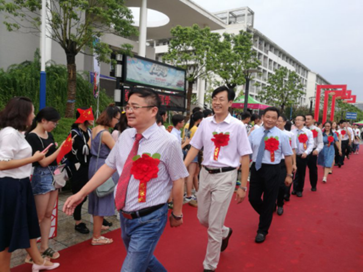 颁奖仪式前的红毯秀上,受表彰老师和受表彰单位代表们胸佩红花,容光焕发,在学生们充满敬意的掌声和热烈的欢呼声中踏上红地毯,精神抖擞地走过“星光大道”,在签名墙前签名合影留念,场面热烈而温馨。