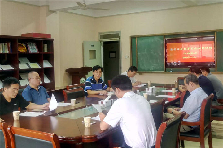 本网讯(教科院 徐赟、刘思义/文 刘思义/图)2017年8月30日上午,受安徽省教育厅教育招生考试院委托,学院在408会议室召开《关于制定安徽省高考综合改革实施方案》研制工作布置会。会议由教育科学学院院长桑青松主持,教育科学学院、外国语学院周兴国、阮成武、桂守才、赵必华、段兆兵、徐赟、吴宗酉等老师参加。