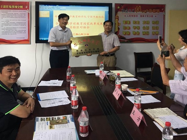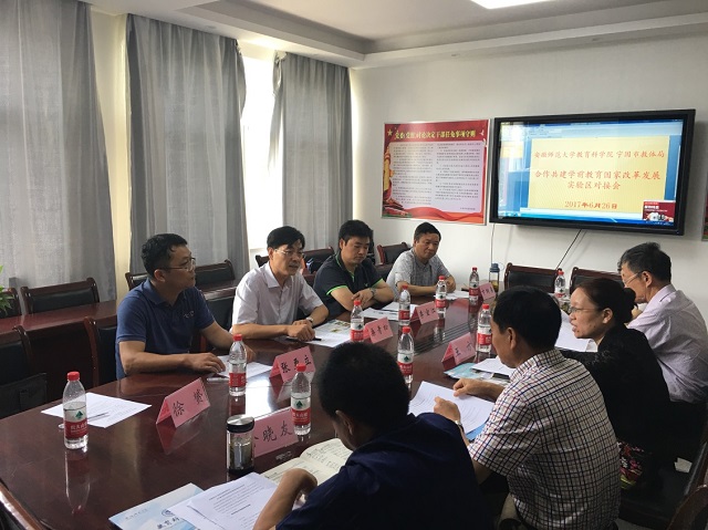 本网讯(教科院 徐赟)2017年6月26日,安徽royal皇家88平台与宁国市教育体育局合作共建学前教育国家改革发展实验区对接会在宁国市教育体育局召开。我院院长桑青松、副院长李宜江、学前教育系主任张更立和教师代表徐赟、院办公室主任卞纲要参加会议,宁国市副市长王方和教育体育局领导出席会议。