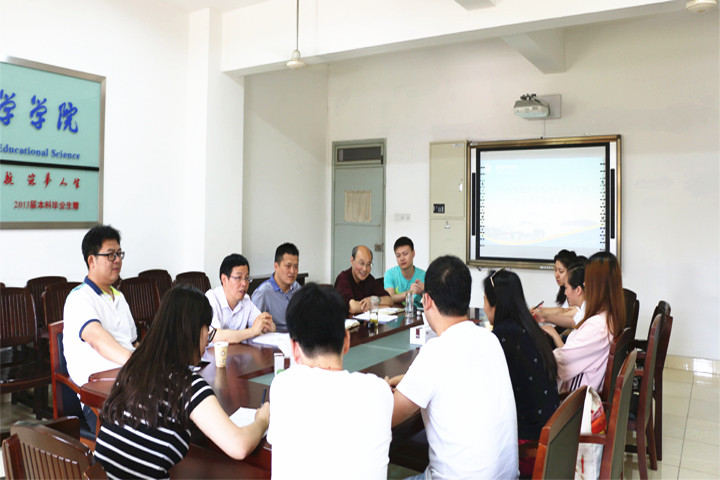 本网讯(教科院 孙力力)5月26日下午,我院召开了教育技术学中美合作班2015和2016级硕士研究生座谈会,院党委书记刘晓宇、副院长聂竹明、2015级研究生辅导员袁同庆共同出席了此次会议。会议由院研究生秘书过婴宝主持,