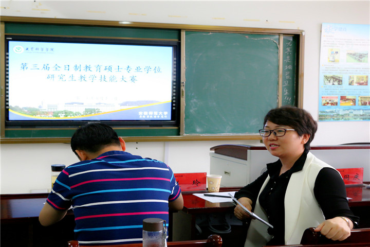 本网讯(文/胡旭珽 图/魏文静)为更好适应教育硕士专业学位研究生教学改革新形势,夯实教学基本功,提升教学素养,我院于5月12日上午,在412教室举行全日制教育硕士研究生教学技能大赛决赛。应邀出席本次大赛的评委嘉宾有:芜湖师范附小校长赵玲老师,芜湖职业技术学院许普东副教授,我院吴玲教授、马家安副教授、袁同庆老师等。大赛由副院长李宜江教授主持,16级专业学位全体研究生到场观赛。