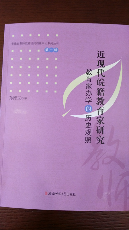 本网讯(教科院)近期,我院孙德玉教授的专著《近现代皖籍教育家研究——教育家办学的历史观照》一书,历时三年,数易其稿,终于与读者见面。该书系安徽省教师教育协同创新中心课题研究成果,是一本专门研究近现代皖籍教育家的具有区域特色的一部力作。