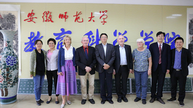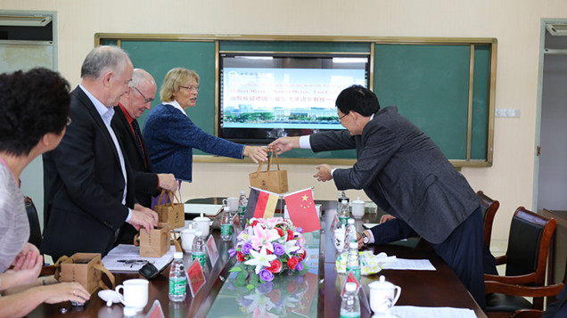 本网讯(教科院 孟庆娟)10月17日,德国奥尔登堡大学希尔伯特·迈尔教授、艾拉·埃克特教授,德国汉堡大学迈纳特·迈尔教授等一行4人应邀来我校访问交流,校长王伦在教科院408会议室会见了来访客人。陪同的还有学院院长桑青松、副院长聂竹明、教授委员会主任周兴国。皖江学院副院长叶旭萍全程担任翻译。