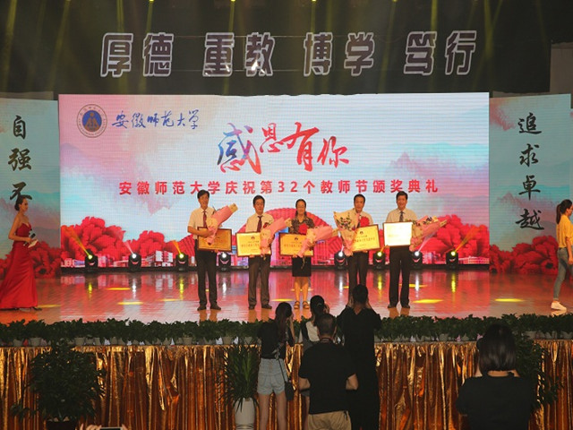 颁奖典礼上,校领导、专家教授分别为获奖代表颁发证书,学生志愿者向获奖教师向上鲜花。我院2015-2016年度的多项工作荣誉喜获表彰:学院档案工作荣获校“档案工作先进集体标兵”称号;学院暑期社会实践工作荣获校大学生暑期“三下乡”社会实践优秀组织单位;学院就业工作分获校研究生就业工作先进单位、本科生就业先进单位;此外,吴文涛荣获校“就业工作先进个人”。