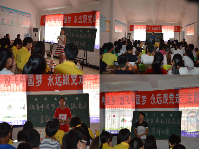 本网讯(教科院 冉琼)7月30日,为深入贯彻党的十八大和全国两会的精神,引导广大青少年全面理解习近平总书记对“中国梦”的深情阐述,畅想民族的复兴--“中国梦”的光明前景,激发青少年树立远大理想。教科院“全心全意”赴冉庙关爱留守儿童调研团队联合冉庙乡乡政府、冉庙中学成功举办“放飞中国梦,永远跟党走”主题演讲比赛。阜阳市文广新局局长韩伟、冉庙乡乡政府宣传委员兰李星、冉庙中学校长来红良,冉庙中学团委负责人高川莅临指导。