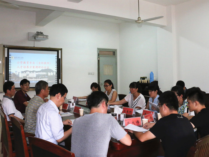 本网讯(教科院 黄引娣)聆听一线教师声音,培养乡村全科小学教师。8月10日下午,我院在三楼会议室召开小学教育专业(全科教师)人才培养方案调研会,副校长朱家存、教务处处长席贻龙、院党委书记刘晓宇、院长桑青松、副院长李宜江及来自省内临泉县、寿县、泾县、利辛县、霍山县、泗县、阜南县等地7所小学的农村特岗教师应邀出席了会议。调研会由院长桑青松主持。