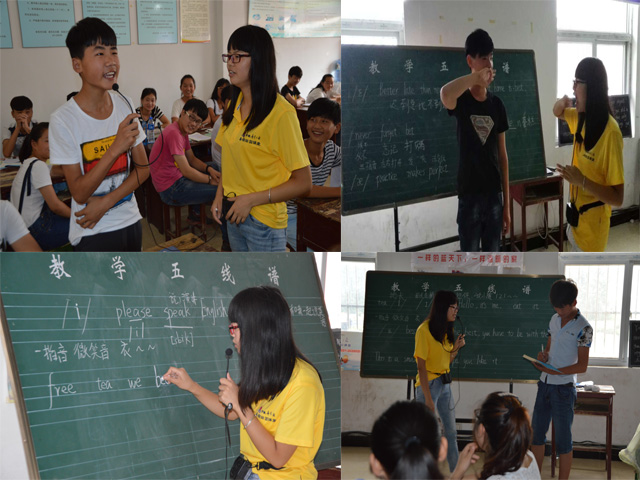 针对农村英语教育水平低下的现状,实践团队专门成立了英语交流课教学小组,其中包括“英语交流课之基础夯实”,“英语交流课之口语提升”,“英语交流课之习题拔高”三大教学板块。其中,口语提升板块注重音标学习和锻炼学生读英语的能力。任课老师戴倩倩老师以激情洋溢的教学风格和互动使课堂氛围异常活跃,独特的发音技巧和高水平的英语口语能力带领着学员进入一片探索英语新天地。