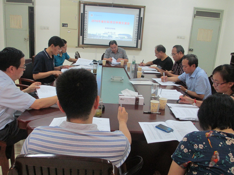 本网讯(教科院 孟庆娟)7月8日,学院召开科研工作推进会,院党政领导班子成员及全院教职工参加了会议。会上,副院长聂竹明通过一张简明的申报说明图,对2017国家社科申报要点、关键要求和时间节点做了简洁直观的解读,并针对我院教师专业特点提供具体可行建议。院长桑青松特别指出,暑期是教师科学研究、课题申报和成果产出的关键孵化期,广大教师要充分利用好暑期,提前准备,认真打磨,仔细推敲,全副精力完成课题申报的攻坚克难,取得重大收获。