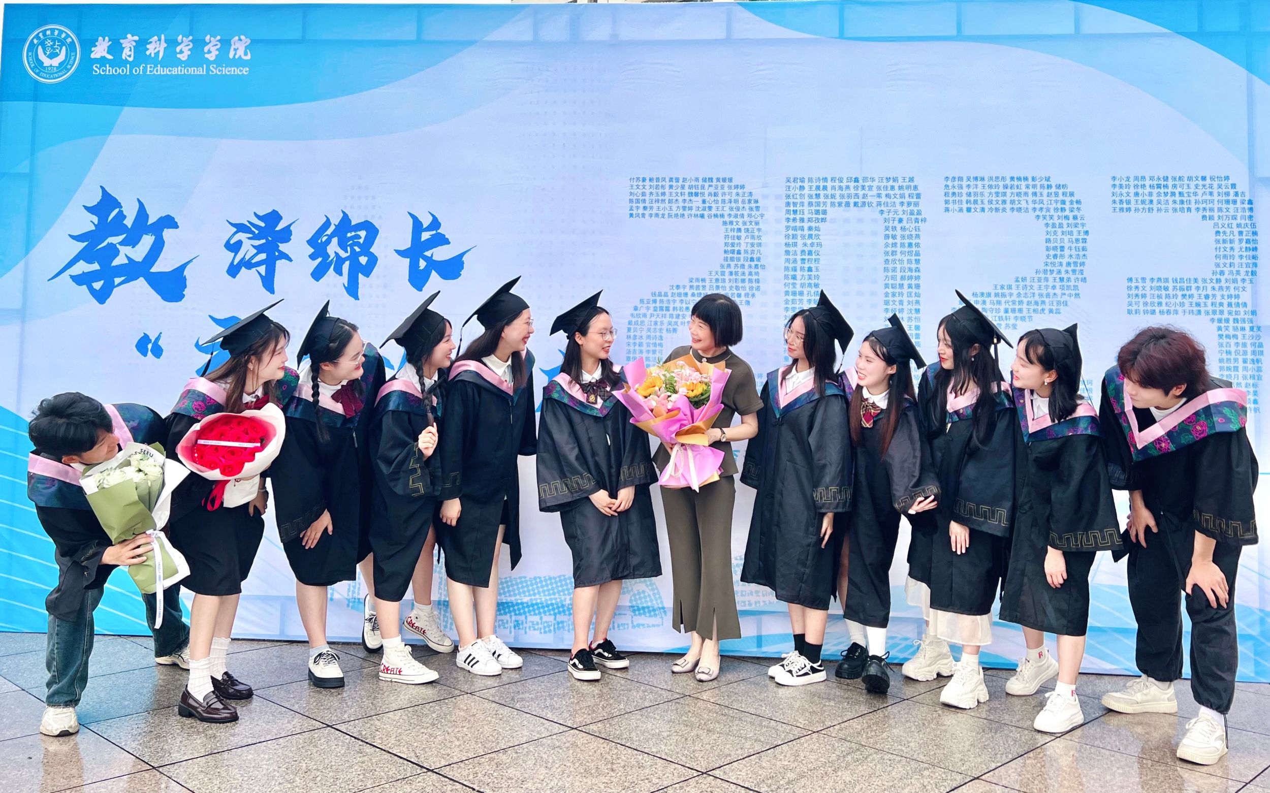 春风化雨,润物无声,她不忘育人初心,而拔节生长的后生新苗是对“良师”的最好注解。近5年赵学菊老师指导54名本科生,38人考取北京师范大学、华东师范大学、南京师范大学、美国哥伦比亚大学、英国伦敦大学等多所国内外名校研究生,占比70.3%。亦有学生以其为榜样,躬耕教育一线。教育的接力棒在她手上从未松懈,而她也将这个接力棒传给了一代又一代的学生。