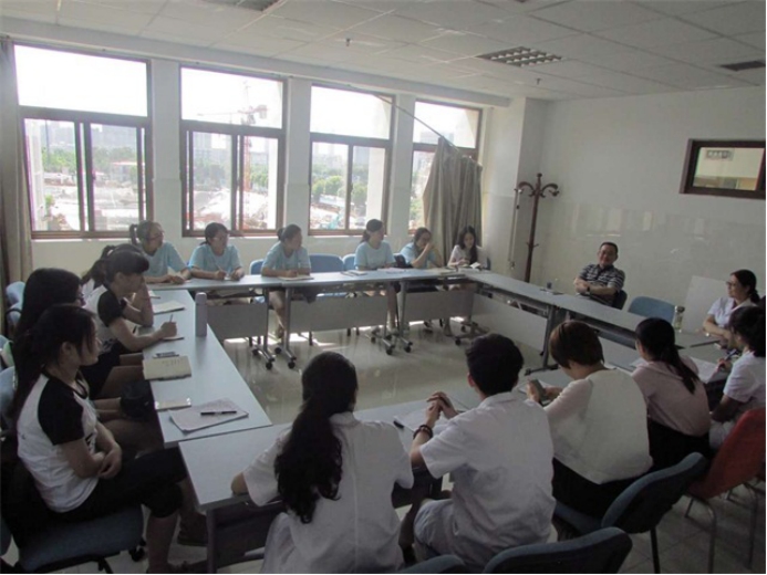 会议在心理科主任郑欣的简短而又风趣幽默的一段话后正式开始。首先是心理治疗师杨娟给大家讲述了一个精神分裂症患者的案例,听完治疗师的案例后,大家都意识到一个问题:患者不太配合治疗师的工作,那么该如何改善现状呢?于是,所有参与人员就这个问题展开了讨论。王芳老师说:“我认为与其建立信任关系很重要。因为信任是沟通的前提,所以能获得患者的信任是第一步。可以通过更加真诚地对待患者来感染他。”我们听完后觉得很有道理。接着,心理学系的学生罗艺茹说:“我认为共情很重要。我们应该理解患者的行为并理解他的感受,只有这样患者才会觉得我们是有共鸣的并且才有进一步深入沟通的可能。”接着,心理系徐明芳等学生也说了自己的想法。当有不同意见时,大家会积极地讨论起来,所以会议室的气氛还是很活跃的。