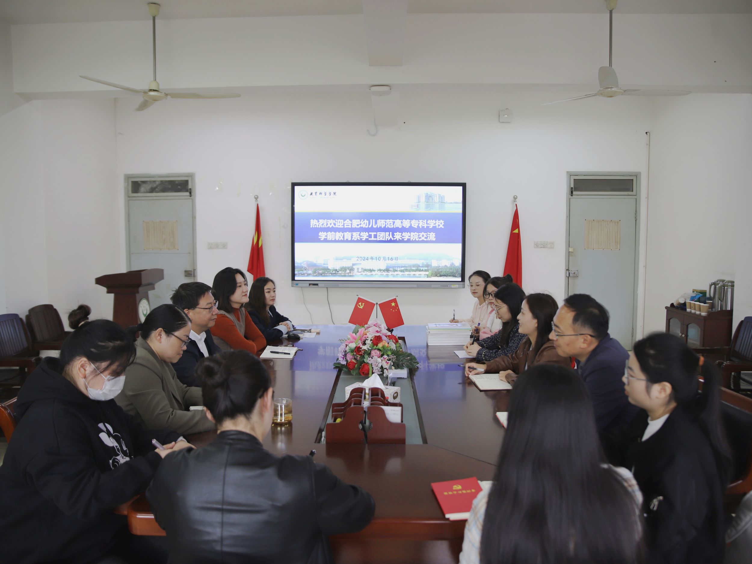 10月16日上午,合肥幼儿师范高等专科学校学前教育系学工团队及部分毕业生代表来学院开展交流学习活动。院党委书记许国飞,院党委副书记杜凤,学院辅导员蔡文、赵茜以及金凤仙参加本次交流。