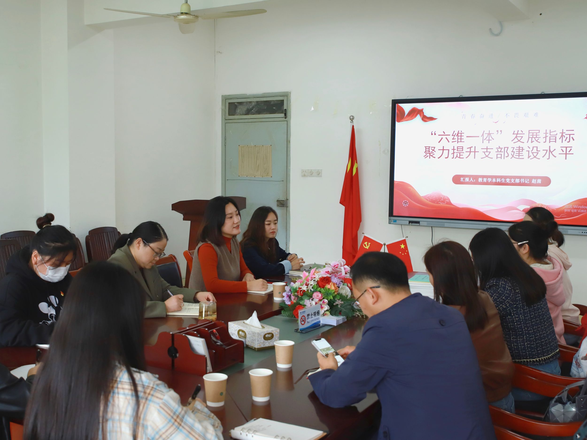 蔡文对学前教育本科生党支部获批“教育部新时代高校党建双创工作全国党建样板支部培育创建单位”的相关工作经验进行了介绍,总结经验的同时也指出了不足和努力方向,为双方未来的党员发展、党的建设等工作提供了新思路。赵茜介绍了教育学本科生党支部当前“六维一体”的发展指标。赵茜指出,目前该指标也在全院进行了推广并受到一致好评,在入党流程中做到了公平公正、公开透明。金凤仙就学生资助工作进行了交流分享,提出在资助工作中应做到事无巨细,真正落实“应助尽助”的资助原则,保证真正困难的学生可以得到及时、充分的帮助。蔡文介绍教科院24届毕业生考研、就业情况。学前教育系辅导员张晨表示,在未来的工作中会多加沟通和交流,共同促进未来联合培养工作的开展,助力学生成长。
