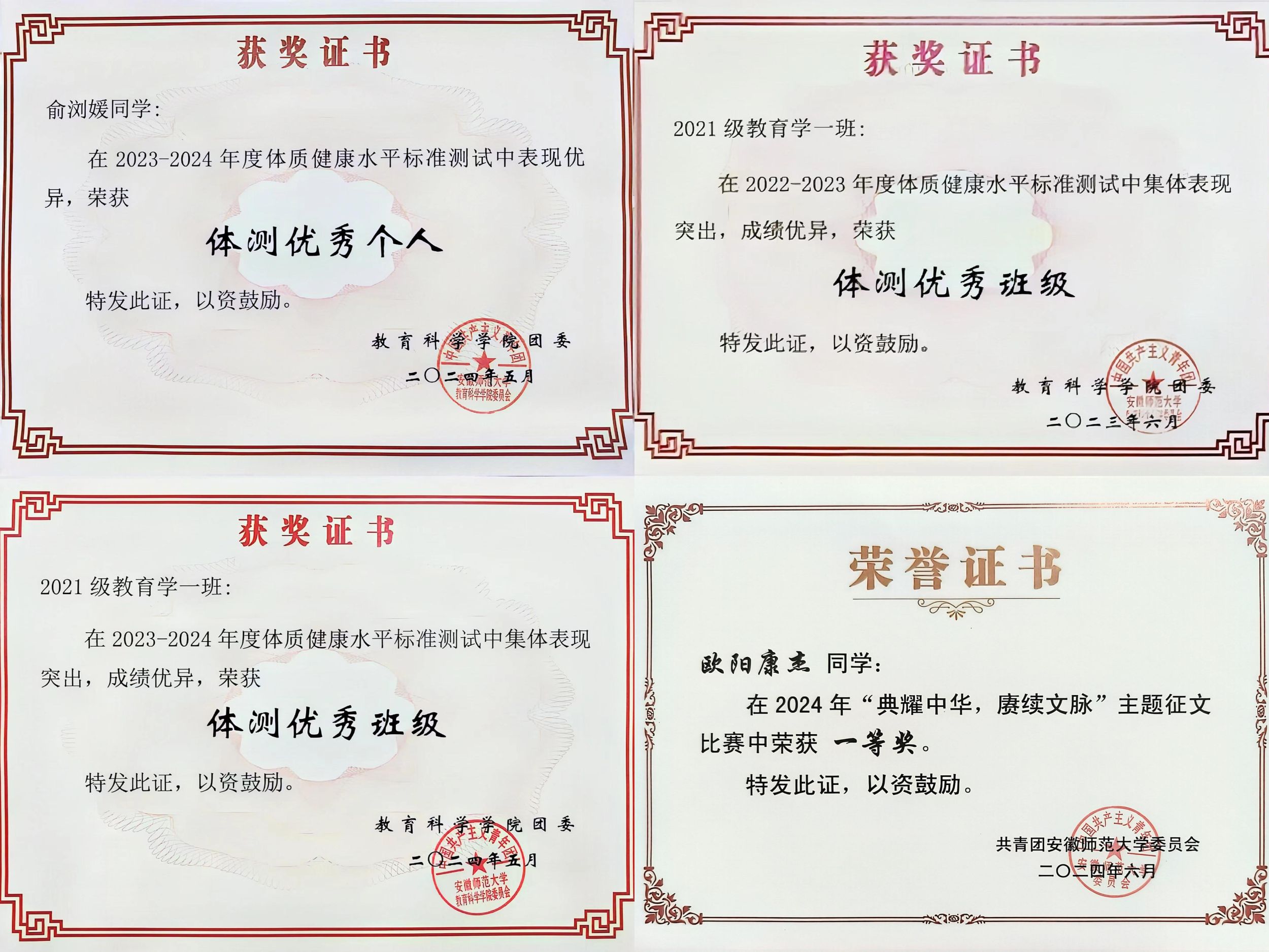 10月30日下午,安徽师范大学2023-2024学年“十佳班集体”风采展评会在花津校区举行。教育科学学院2021级教育学1班在本次“十佳班集体”评选中以精彩的表现脱颖而出,荣获“十佳班集体”荣誉称号。该班也是继2023年2020级教育技术学1班之后,学院再次获评校“十佳班集体”的班级。
