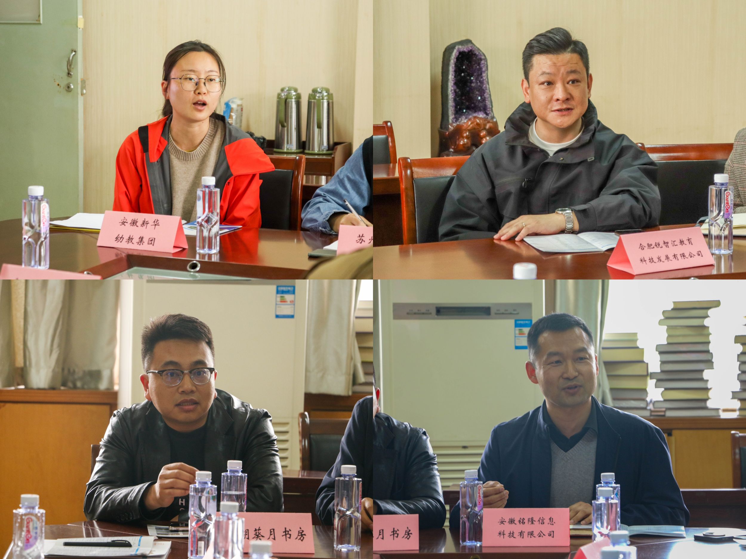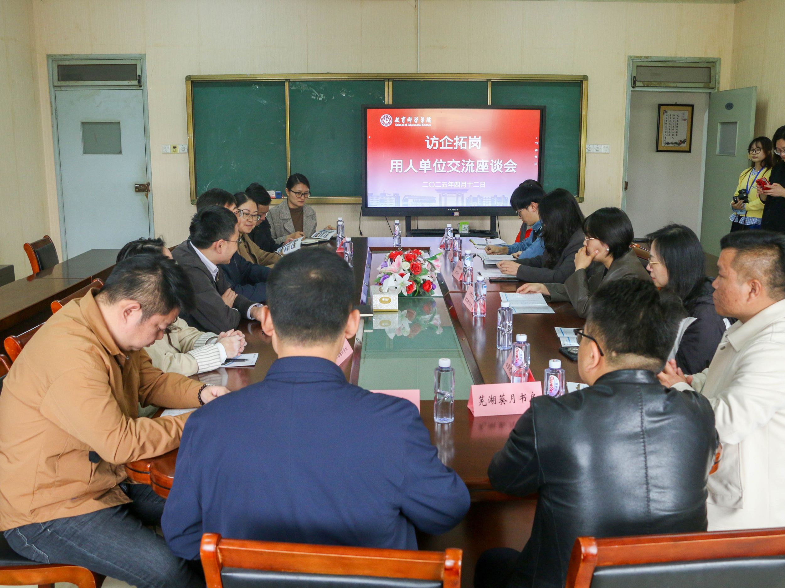 为落实大学生护航行动计划,促进2025届毕业生高质量就业,积极落实就业岗位。4月12日下午,教育科学学院于田楼B座408会议室举办访企拓岗用人单位交流座谈会。学院党委书记许国飞、副书记杜凤、副院长韩建涛、教育学专业负责人徐赟、心理学专业负责人王礼军、毕业班辅导员参与此次会议。芜湖葵月书房、安徽新华幼教集团、合肥锐智汇教育科技发展有限公司、合肥新东方培训学校、上海崇明聿拓培训学校、常州科技经贸技工学校、安徽铭隆信息科技有限公司、苏州新东方培训学校、安徽文亮教育培训学校、灵润心理健康中心等十余家企业受邀参加。会议由韩建涛主持。