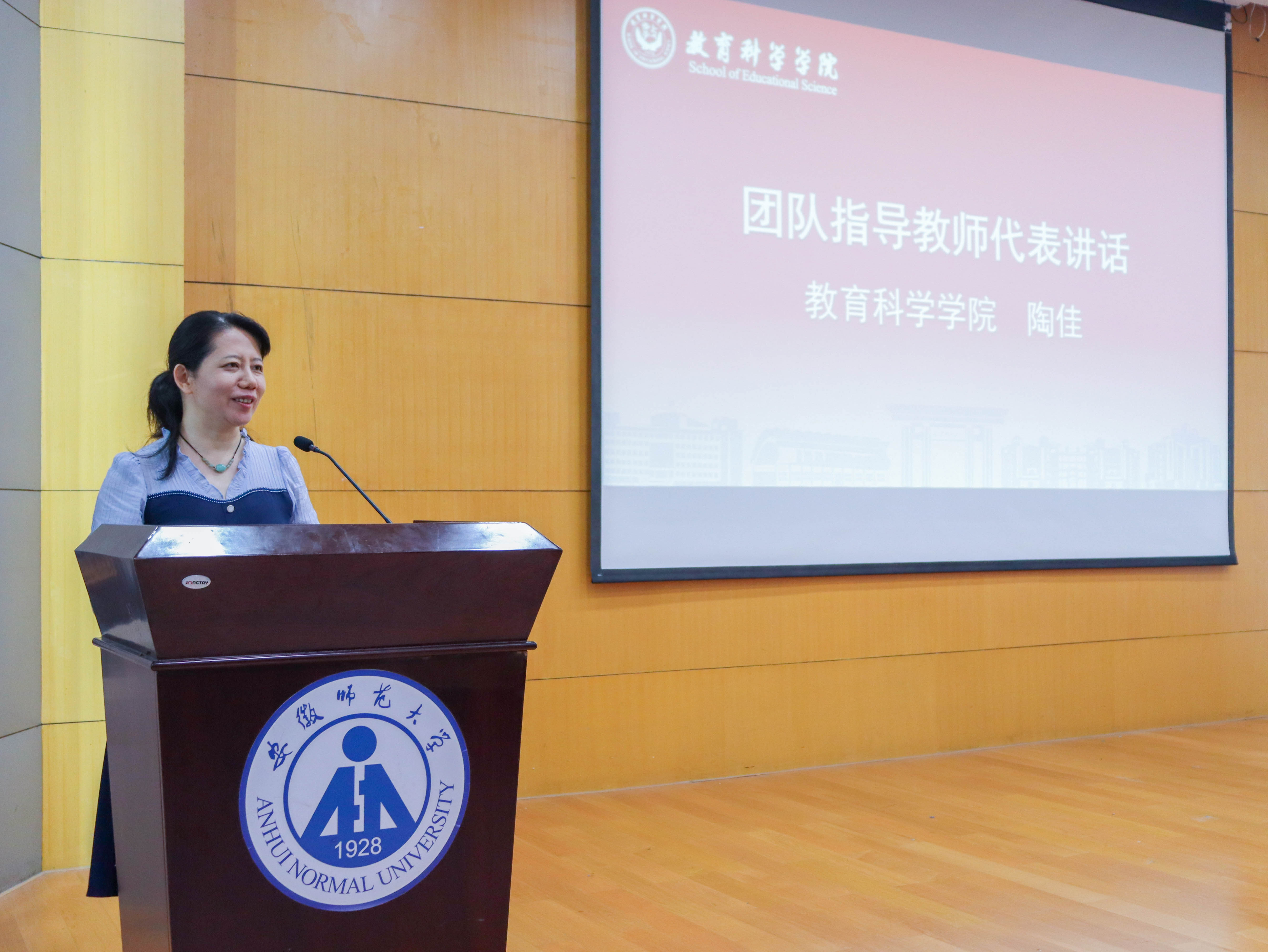 陶佳作为指导教师代表进行分享。暑期实践是将理论转化为实践智慧的舞台。她希望同学带责任实践,以师范生身份传递教育温暖;带问题实践,用技术精准对接理论与需求;带安全实践,做好人身、财产等安全预案。最后祝福同学在实践中受教育、长才干,做贡献