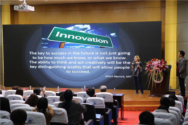 美国中西部儿童教育协会和内布拉斯加教育协会主席米歇尔·鲁帕柏教授以“儿童积极思考的培养及实施方案探索”为主题进行了演讲。米歇尔围绕“教师可以为儿童提供什么帮助”以及“学前儿童应该学习什么”这两个议题进行了生动具体的阐述。随后,米歇尔·鲁帕柏教授团队的成员玛丽、艾米莉等五人也围绕教师专业发展、家园共育等问题先后进行了发言,并和参会代表进行了深入的互动。