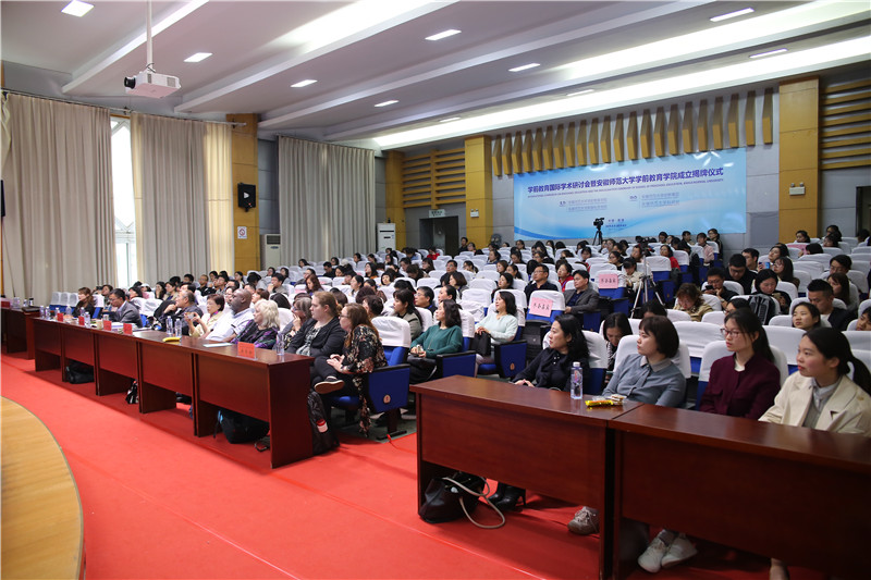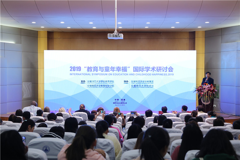 本网讯(教科院 郭文静 张志华 朱立新)2019年4月4日、5日,为庆祝安徽师范大学学前教育学院成立,在隆重的揭牌仪式结束后,安徽师范大学学前教育学院和教育科学学院共同主办了“教育与童年幸福”国际学术研讨会。协办单位为安徽师范大学幼教集团和安徽师范大学科研处。来自美国、韩国、中国香港和台湾的学前教育专家和学者汇聚一堂,展开了深入友好的交流。