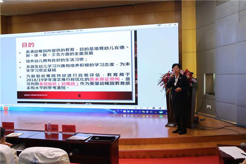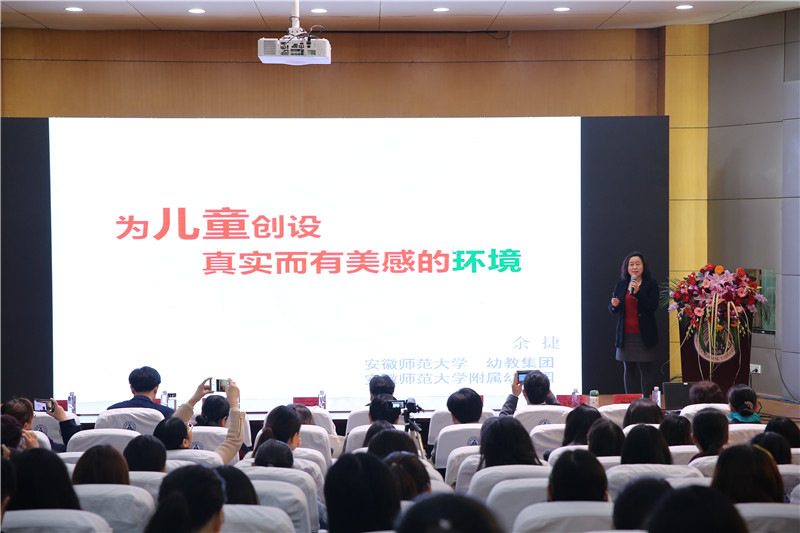 4月5日上午,安徽师范大学幼教集团主任余捷与在座的专家、师生以“为儿童创设真实而有美感的环境”为题进行了分享。余主任运用丰富的幼儿园环境创设的实例,在分析幼儿园环创普遍存在的问题的基础上,提出应创设以儿童为本的环境,自然生态的环境,质朴实用的环境,艺术的环境以及做好环境的管理。另一位来自幼教一线的专家是香港幼稚园协会幼儿学校校长唐少勋女士,她为与会代表贡献了一场内容丰富又风趣的演说——“香港幼稚园教育之现状”。唐校长从教育目的、学校类型、学费及承担、幼稚园的规模等方面介绍了香港学前教育发展的现状,并就香港幼儿园的课程建设进行了详细的阐述。