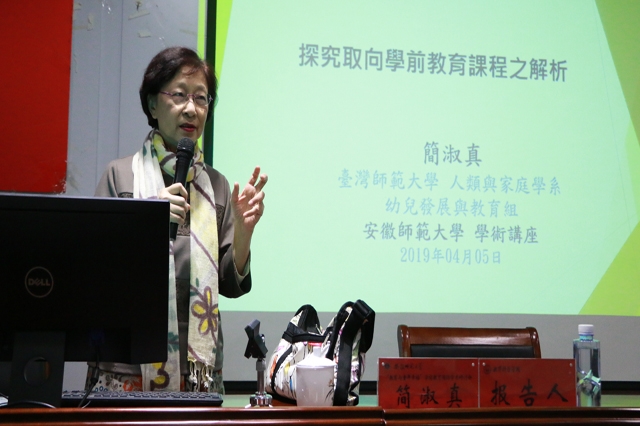 简淑真教授以“探究取向学前教育课程之解析”为主题,深入浅出地完成了一场精彩纷呈的报告。简教授强调在信息爆炸的时代下,信息与知识的层次不同,因而一种探究性取向在教学或是学前教育课程中具有十分重要的意义,探究取向下的课程有助于培养幼儿的核心素养——能力、态度和价值观。这种探究取向下的学前教育课程建议采用统整性主题,与现实世界的统整性规律以及人类大脑的学习习惯契合相关。结合同学们日常学习的内容,她以意大利瑞吉欧幼儿园的探究取向方案课程为例,阐释了在探究取向的学前教育课程中的POE原则,即预测(Prediction)、观察(Observation)和评论(Evaluation),学生学习的方法有时候比得到正确答案更重要。简教授最后分享了台湾教育部提出的认知领域下培养幼儿习得认知能力的思考历程:提出探究性问题、系统收集并整理信息、确认问题、与他人合作以解决问题等。